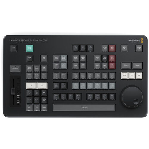 Blackmagic Design DaVinci Resolve Replay Editor Blackmagic Designs DaVinci Resolve Replay Editor is an editor panel specifically designed for multi-cam editing for news cutting and live sports replay. Includes buttons to make camera selection and editing extremely fast! Connects via Bluetooth or USBC! Connections Computer Interface USB TypeC. Bluetooth Bluetooth 5.1 LE Power Requirements Power Supply Internal battery with power switch. USB-C port for external power supply and battery charging. Power Usage 6 W max. Operating Systems Mac 14.3 Sonoma or later. Windows 10, 64-bit. Physical Specifications Environmental Specifications Operating Temperature 0 to 40C (32 to 104F) Storage Temperature -20 to 60C (-4 to 140F) Relative Humidity 0% to 90% non-condensing What's Included DaVinci Resolve Replay Editor Welcome wallet with QR code for software download Warranty 1 Year Limited Manufacturer's Warranty.